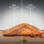 Conheça ainda mais o poder do vapor com a Tecnologia VaporCrisp, que além de garantir maior suculência nas receitas, também regenera os alimentos, mantendo o sabor original, sem ressecá-los. Essa função também será seu aliado na hora da limpeza, facilitando a remoção de resíduos e garantindo que sua Air Fryer esteja sempre impecável. Com apenas um toque, jatos de vapor serão acionados limpando as impurezas que possam estar obstruindo as saídas de vapor e auxiliando na remoção de gorduras e resíduos de alimentos na cuba.