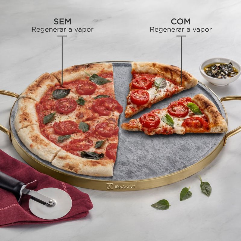 Com a função AirFry, você prepara alimentos com sabor e textura de fritos de forma mais saudável e com pouca ou nenhuma adição de óleo. Já com a função Vapor, você prepara receitas como legumes, peixes e outras mais delicadas, como as orientais guioza e pao bao, preservando os nutrientes e a suculência dos alimentos. Com a função AirFry + Vapor, você tem o melhor dos dois mundos: a praticidade e eficiência da Air Fryer com a suculência e o sabor da cocção a vapor. A função Desidratar permite preparar petiscos saudáveis, como deliciosos chips de frutas e legumes.