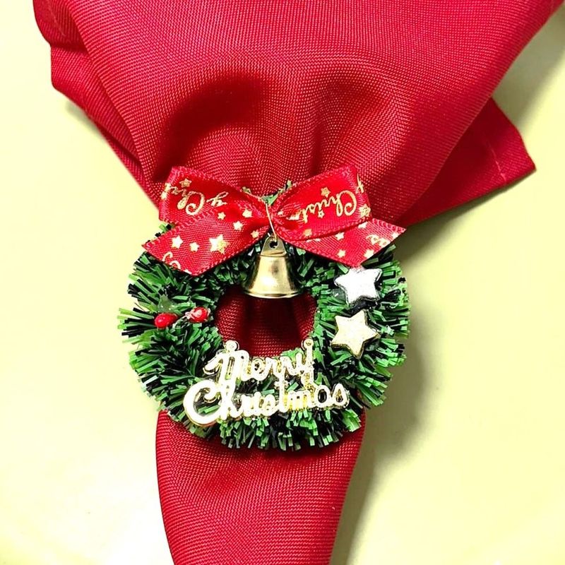 As argolas são fabricadas em arame decorado na cor verde, garantindo resistência e um toque refinado. O design de guirlanda de Natal apresenta detalhes delicados que remetem à festividade, adicionando um charme temático e elegante à sua mesa posta durante as celebrações de fim de ano.