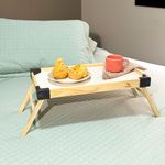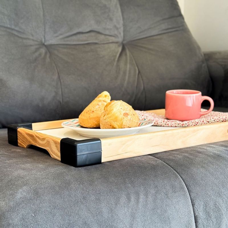 A bandeja possui 47 cm de comprimento, 27 cm de largura e 4 cm de altura (quando os pés estão dobrados). Seu design espaçoso é ideal para acomodar um café da manhã completo para uma pessoa ou diversos itens para compartilhar, oferecendo praticidade e organização para suas refeições.