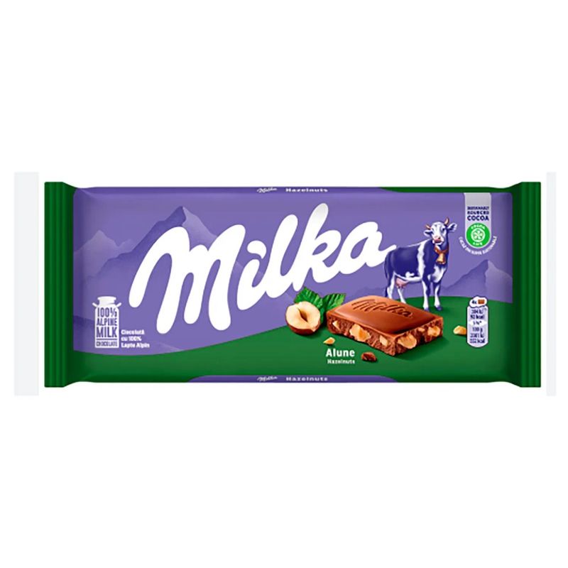 Sabor Envolvente: O chocolate ao leite dos Alpes da Milka se une a pedaços de avelã, criando uma combinação de sabor e textura que agrada ao paladar.