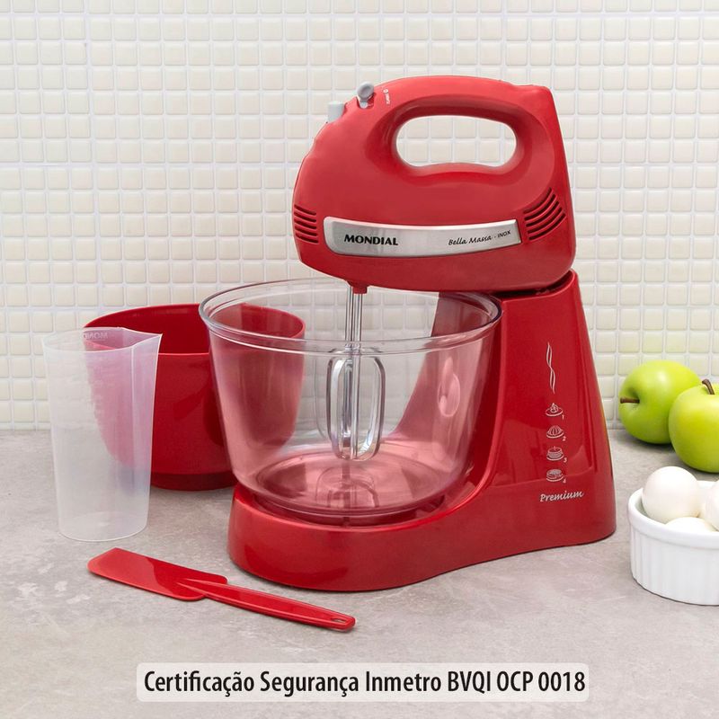 A Batedeira Mondial Bella Massa B-29NP Vermelha com 4 Velocidades permite que você prepare as massas para as suas receitas com maior praticidade e excelentes resultados. Eficiente e com 400W de potência, este modelo conta 4 velocidades turbo, e 2 tigelas 2,3 litros e 4 litros. Seu batedores são feitos em aço cromado, material bastante resistente e longamente usável. Prática, a Bella Massa tem sistema de encaixe simples e base com roldanas, além de trazer 1 copo medidor e 1 espátula.
