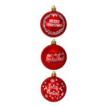 Celebre o Natal com charme e alegria usando o conjunto Bola Mensagens 8cm Vermelho e Branco Yangzi. Com design encantador e acabamento brilhante, as bolas exibem mensagens natalinas como Merry Christmas, Ho Ho Ho e Feliz Natal, acompanhadas por delicados desenhos brancos que trazem um toque festivo e acolhedor à sua decoração.A cor vermelha vibrante simboliza a energia e o calor das festas, enquanto os detalhes brancos criam um contraste elegante, ideal para quem deseja um visual clássico e sofisticado.Fabricadas em material leve e resistente, essas bolas são perfeitas para decorar árvores de Natal, guirlandas, arranjos ou centros de mesa. O conjunto com três unidades garante harmonia e beleza em qualquer composição natalina.