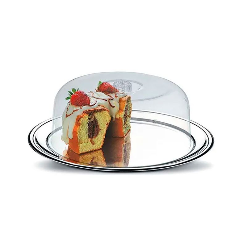 A Boleira Com Tampa Petúnia 32cm Inox - Brinox é o item perfeito para quem valoriza praticidade e elegância na hora de servir e conservar bolos, tortas e sobremesas. Com design clássico e funcional, o conjunto é composto por um prato e uma tampa, que se encaixam perfeitamente, garantindo proteção e uma apresentação sofisticada para suas receitas. Feita pela fabricante Brinox, o prato é confeccionado em aço inox e a tampa em poliestireno de alta qualidade. Com dimensão de 9,8x31x31cm.
