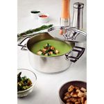 Fabricada em aço inoxidável, a caçarola não libera resíduos, garantindo refeições mais saudáveis e maior durabilidade do produto.