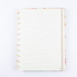 O sistema inovador de encadernação por discos permite adicionar, remover e reorganizar as folhas do seu caderno com total liberdade. As folhas possuem furos especiais que se encaixam perfeitamente nos discos, tornando a personalização e a organização do conteúdo extremamente flexíveis e práticas no dia a dia.