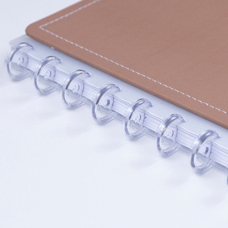 Sistema de discos reposicionáveis: Proporciona liberdade total para adicionar, remover e reorganizar suas folhas, adaptando o caderno às suas necessidades de forma contínua.