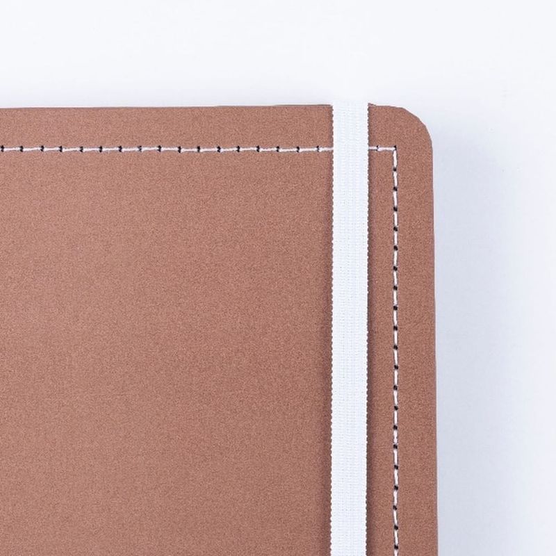 Construção com materiais selecionados: Apresenta capa rígida laminada com acabamento soft touch e forro interno em papel Supremo 350g, garantindo resistência e um toque elegante para uso diário.