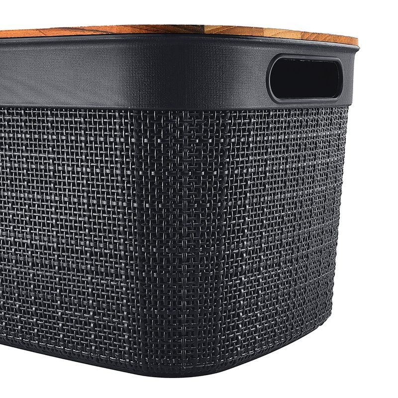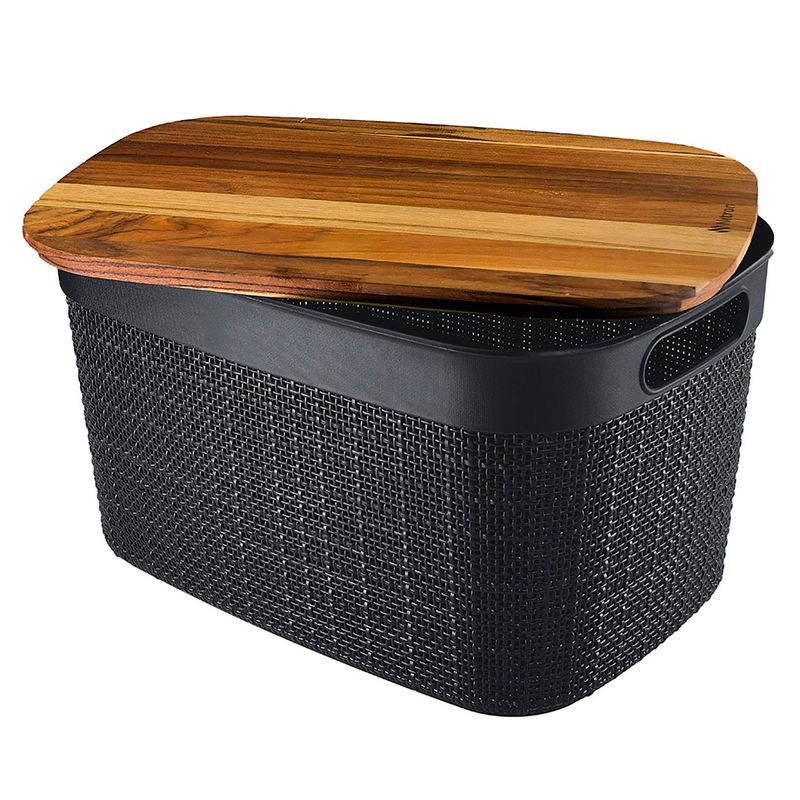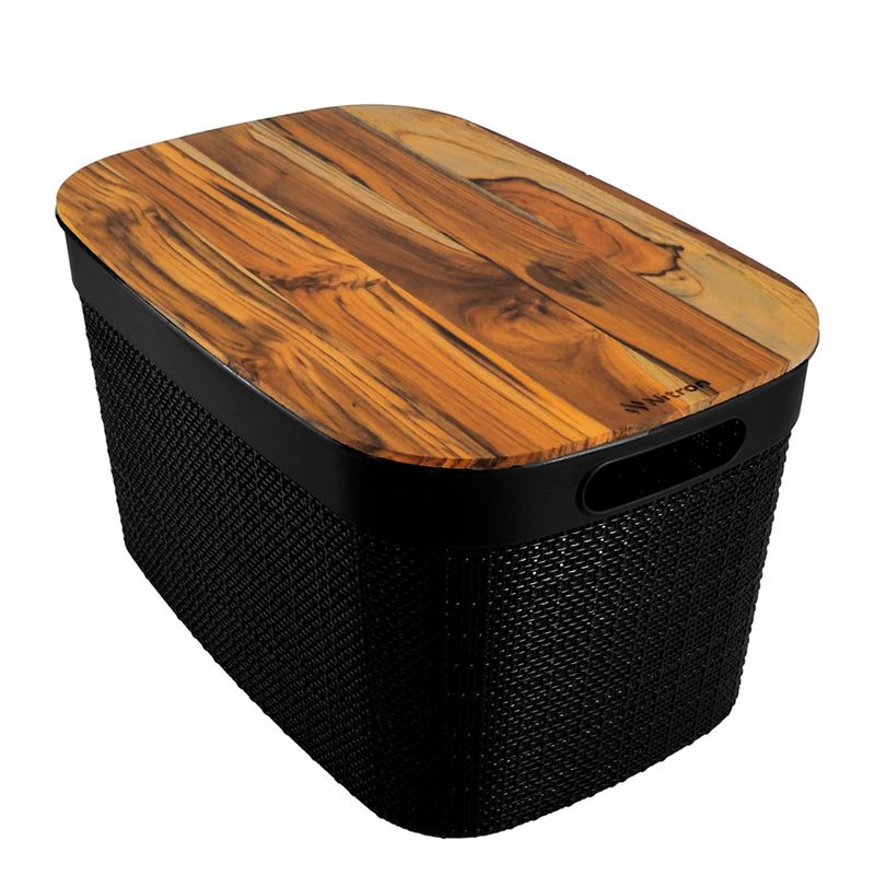 A Caixa Com Tampa Juta 10,8L Preto - Nitron é a solução perfeita para quem busca praticidade, organização e estilo em um único produto. Com design moderno e funcional, se adapta a diversos ambientes da casa. Feito pela fabricante Nitron, a caixa é confeccionada em PP e madeira teca de alta qualidade. Sua tampa em madeira teca traz um toque natural e sofisticado, enquanto a caixa preta com textura tipo juta garante charme e elegância à peça. Ideal para armazenar pequenos objetos, acessórios, itens de higiene, maquiagem ou até utensílios no escritório, mantendo tudo em ordem e sempre à mão. Com capacidade de 10,8 litros, possui dimensão de 19,20x24x34cm.