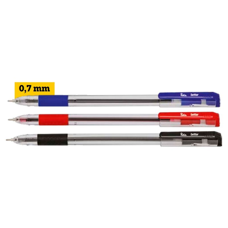 A Caneta Esferográfica Better 0.7mm 3 Peças - Roke aprimora a experiência de escrita com seu design ergonômico e ponta fina de 0.7mm. Este conjunto, que inclui canetas nas cores vermelha, azul e preta, oferece linhas suaves e precisas, assegurando uma escrita confortável e sem esforço prolongado. Ideal para uso no escritório, na escola ou em casa, a linha Better da Roke se destaca pelo desempenho, adaptando-se perfeitamente à sua mão para otimizar cada traço.