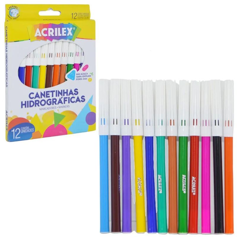 Descubra o mundo da cor e criatividade com o Estojo de Canetas Hidrográficas Acrilex de 12 Cores. Ideal para artistas, estudantes e entusiastas, este conjunto vibrante oferece excelente rendimento e um acabamento impecável em cada traço. As canetas hidrográficas Acrilex são perfeitas para dar vida a desenhos, colorir, fazer anotações e projetos diversos, garantindo cores intensas e com boa fixação. Com tinta lavável, proporcionam uma experiência de uso prática e segura, transformando qualquer ideia em uma obra de arte.