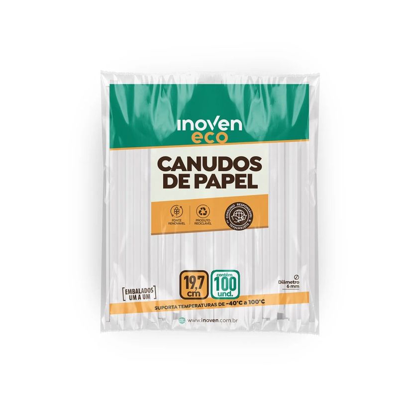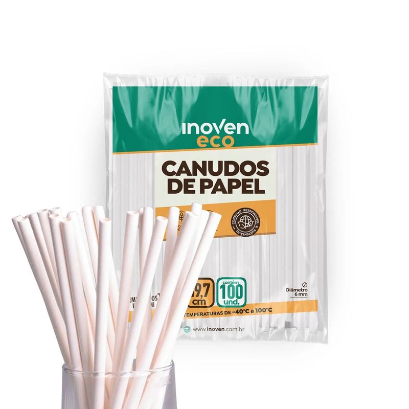 Canudos de Papel 19,7cm Branco 100 Unidades - Inoven
