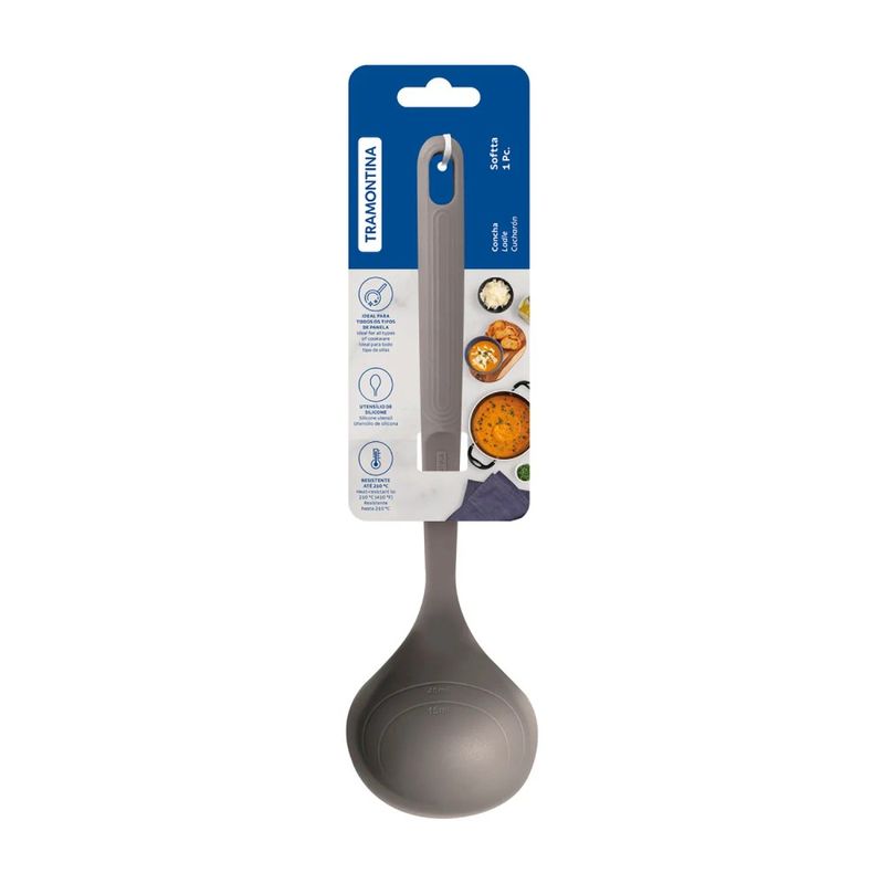 Transforme suas experiências culinárias com a Concha de Silicone Softta Cinza - Tramontina, um utensílio que une funcionalidade e elegância. Fabricada em silicone de alta resistência, suporta temperaturas de até 210°C, sendo ideal para sopas, caldos e molhos. Seu design ergonômico e o material seguro garantem que não danifique panelas com revestimentos antiaderentes ou cerâmicos, prolongando a vida útil de seus utensílios. Além disso, conta com um furo passante no cabo para pendurar e pode ser facilmente higienizada na máquina de lavar louças, otimizando seu dia a dia na cozinha.