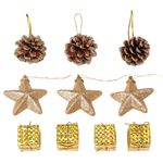 O Conjunto de Enfeites de Natal Sortidos 10 Peças Dourado - Magizi abrilhanta ainda mais a sua decoração de Natal e Réveillon. São 9 enfeites sortidos, como bola e pinha, com acabamento em glitter, que podem ser utilizados para adornar sua árvore de Natal ou montar arranjos e guirlandas.