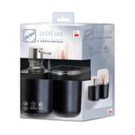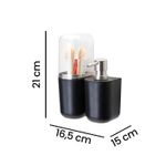 O Conjunto Dispenser com Porta Escova Black Arthi é a união perfeita entre praticidade, estilo e sofisticação para o seu banheiro. Desenvolvido com design moderno e acabamento preto elegante, ele proporciona uma organização inteligente, mantendo sabonete líquido e escovas sempre ao alcance de forma higiênica e funcional.Fabricado em poliestireno de alta resistência, o conjunto oferece excelente durabilidade e leveza. Seu dispenser possui bico dosador metálico, que garante economia e facilidade no uso diário, enquanto o porta-escova vem com tampa acrílica transparente, protegendo os itens contra poeira e respingos.A instalação é simples e dispensa furos, graças à fita adesiva 3M de alta fixação ideal para superfícies lisas. Além de ser fácil de limpar, o conjunto faz parte da Linha Suspensa Arthi, projetada para otimizar espaços e valorizar a estética de banheiros e lavabos modernos.