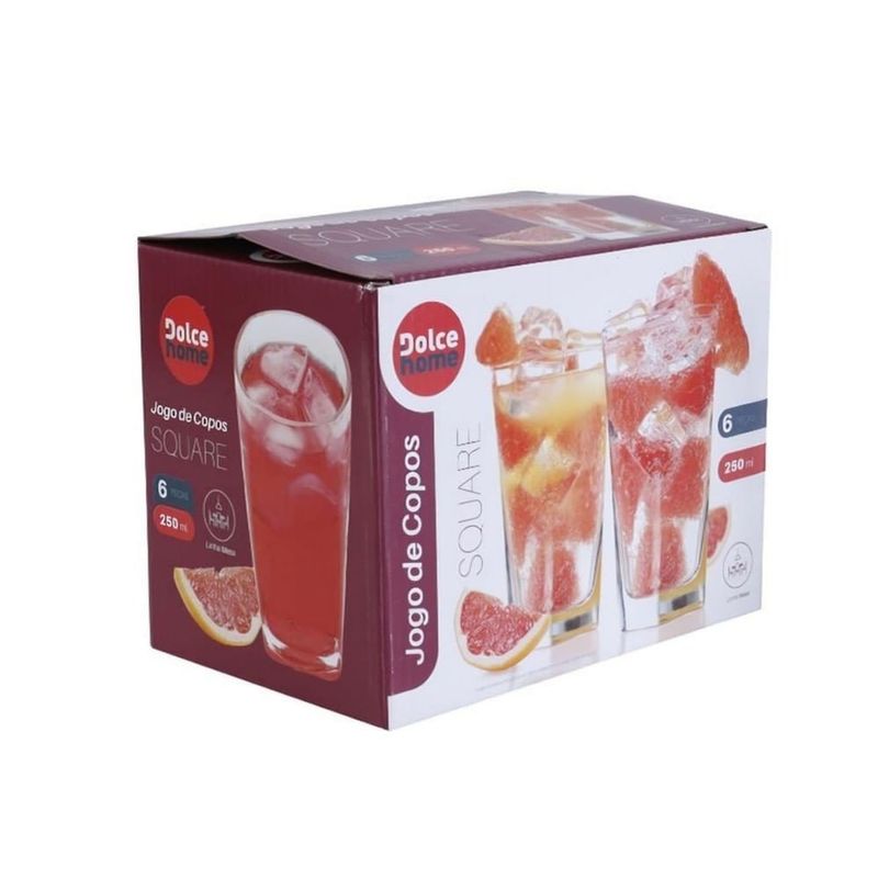 Cada copo do conjunto Square possui uma capacidade de 250mL. Essa medida é adequada e ideal para servir uma ampla variedade de bebidas, como água, sucos, refrigerantes e até mesmo drinks e coquetéis em porções individuais, adaptando-se perfeitamente tanto ao dia a dia quanto a ocasiões especiais.