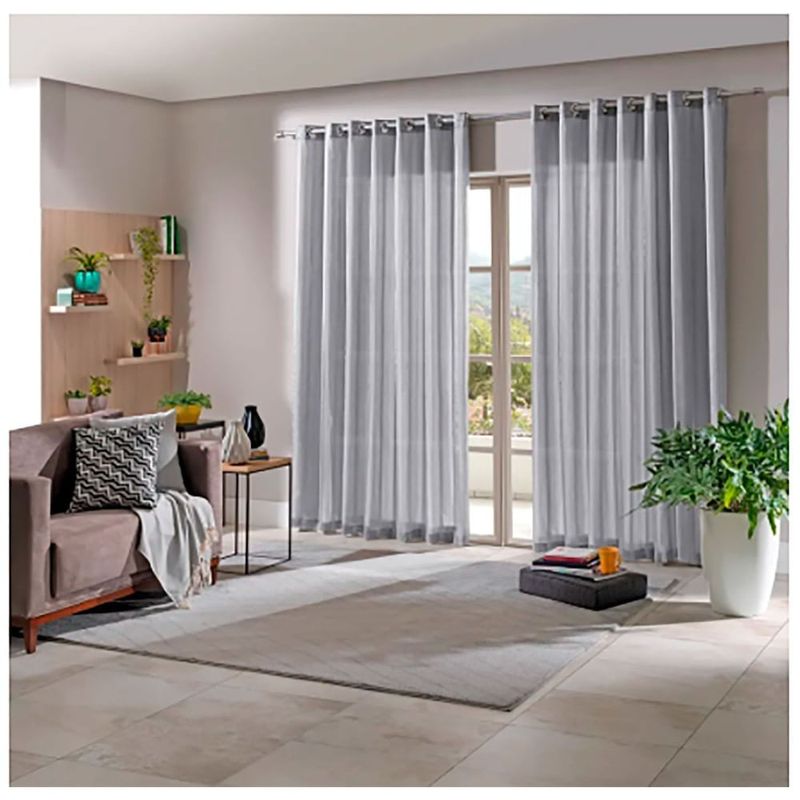 A instalação é simples e requer o uso de um varão. A cortina possui ilhós que facilitam o deslizamento e o caimento perfeito. Certifique-se de que o varão seja compatível com a largura de 3,0m da cortina.