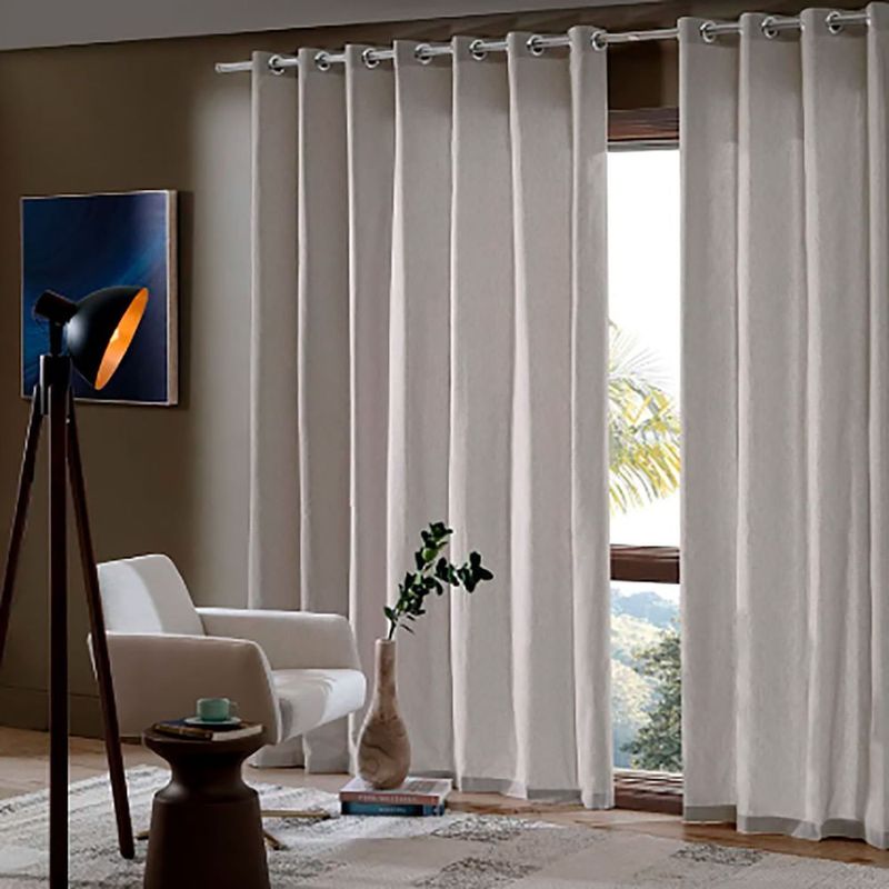 Tecido misto (80% poliéster e 20% algodão): Proporciona o equilíbrio perfeito entre luminosidade natural e privacidade, criando um ambiente aconchegante e elegante.