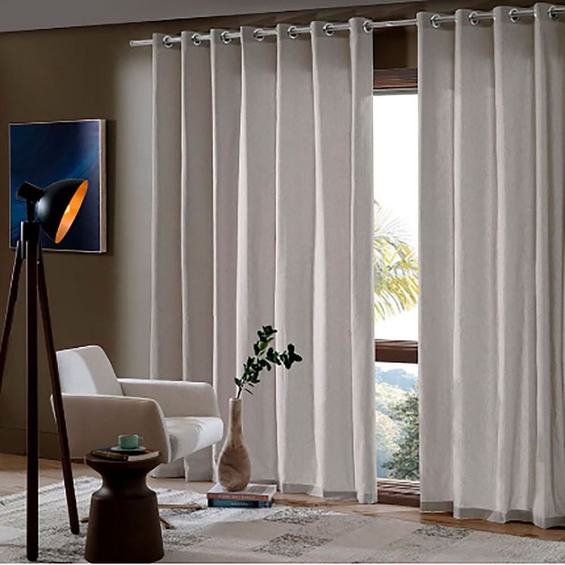 - Acabamento primoroso com bainhas laterais e barra inferior: Garante um caimento perfeito e elegante, valorizando a estética da sua sala ou quarto.