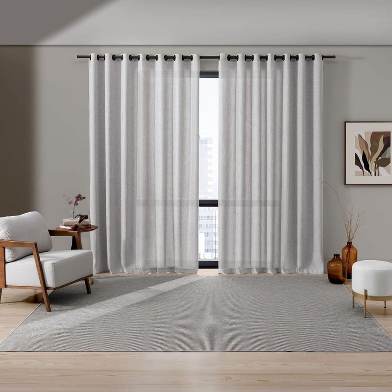 Instalação descomplicada com varão e ilhós fosco: Garante uma montagem rápida e um caimento adequado, realçando a estética do seu espaço.