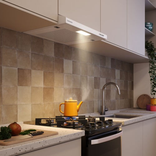 Com vazão de 130 m³/h, sua cozinha fica livre de fumaça e odores indesejáveis com a renovação do ar em menos de 10 minutos¹.