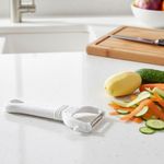 Design Ergonômico e Leve: Fabricado em plástico resistente, proporciona um manuseio confortável e eficiente, tornando o ato de descascar mais ágil e menos cansativo.