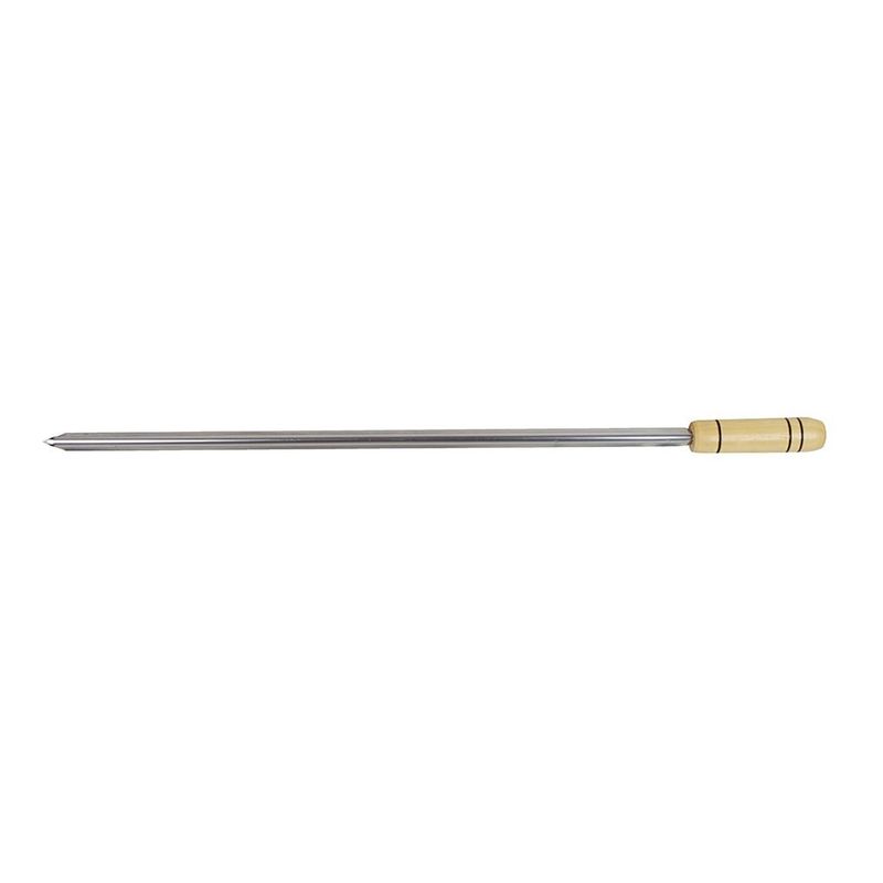 O cabo do espeto é feito de madeira natural, que atua como um isolante térmico. Isso significa que ele ajuda a proteger suas mãos do calor excessivo da churrasqueira, proporcionando um manuseio mais seguro e confortável durante todo o processo do churrasco, permitindo que você vire as carnes com tranquilidade.
