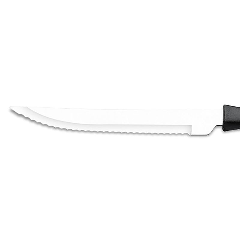 A Faca Churrasco Itaparica Preta - Brinox possui lâmina de aço inox polido, que garante um corte preciso e resistência. O cabo é confeccionado em polipropileno, proporcionando um manuseio confortável e seguro.