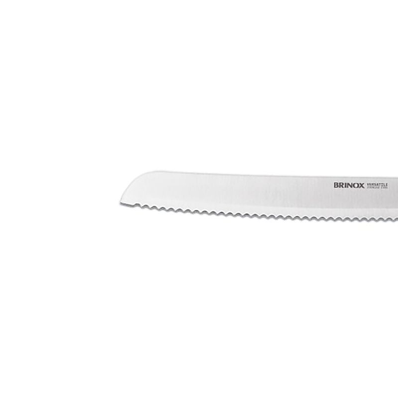 A Faca para Pão Versatile Brinox é eficiente para fatiar pães recém-assados ou com crosta muito crocante? Absolutamente. A lâmina serrilhada de 8 polegadas em aço inoxidável temperado desta faca é desenvolvida para lidar com todos os tipos de pães, incluindo aqueles recém-assados com crosta extra-crocante e miolo macio. Ela permite realizar cortes limpos e sem amassar a estrutura do pão, preservando sua textura e apresentação.