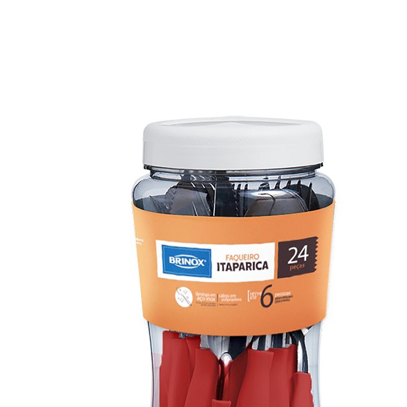 O Faqueiro 24 Peças Itaparica Vermelho - Brinox contém o kit mais básico para refeições de até seis pessoas garfos e colheres de mesa, facas para churrasco e colheres de chá. Colorido e informal, esses talheres são perfeitos para alegrar a sua mesa no dia a dia sem perder em qualidade e beleza. Feitos de aço inox, material durável que não possui propensão de acúmulo de bactérias e cabo em polipropileno, um tipo de plástico resistente.