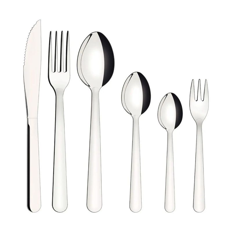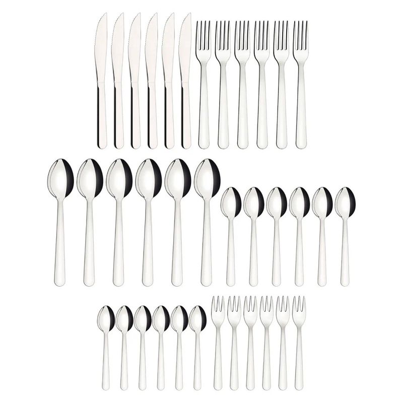 Conjunto completo de 36 peças atende perfeitamente às necessidades de até 6 pessoas, oferecendo opções de talheres para diversas finalidades.
