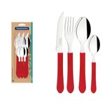 O Faqueiro New Kolor 24 Peças Vermelho - Tramontina é a escolha ideal para quem busca unir praticidade e estilo em suas refeições. Composto por lâminas em aço inox de alta durabilidade e cabos ergonômicos de polipropileno na cor preta, este conjunto de 24 peças foi projetado para oferecer um manuseio seguro e preciso. As facas possuem lâminas temperadas que garantem um excelente desempenho de corte, enquanto os garfos e colheres complementam a experiência com sua resistência à corrosão. Perfeito para servir até 6 pessoas, o faqueiro é também apto para lava-louças, facilitando a limpeza e otimizando seu tempo na cozinha. Seu design funcional e moderno adiciona um toque de cor e elegância à sua mesa.