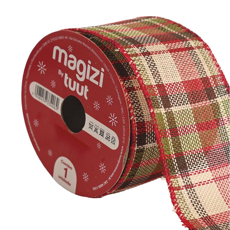 A Fita Aramada 63mmx5m Xadrez Vermelho Verde - Yangzi é perfeita para criar laços, enfeitar guirlandas, árvores, arranjos, embalagens de presente e centros de mesa, trazendo elegância e charme a cada detalhe. Feita pela fabricante Yangzi, a fita é confeccionada com materiais de alta qualidade. Permitindo moldar facilmente o formato desejado, garantindo praticidade e excelente acabamento em suas criações. O padrão xadrez combina vermelho, verde e dourado, resultando em um visual sofisticado e acolhedor, ideal para quem deseja compor uma decoração cheia de estilo e tradição. Com dimensão de 63mm x 5m.