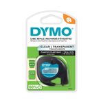 A Fita Plástica para Rotuladores 12mmx4m Transparente - Dymo é a solução para organizar e identificar seus pertences com clareza. Desenvolvida especificamente para rotuladores Dymo Letratag, esta fita autoadesiva possui um sistema de pré-corte Easy Peel, garantindo uma aplicação rápida e descomplicada. Seu material plástico transparente e impermeável assegura que as etiquetas resistam ao tempo e à umidade, mantendo a impressão preta nítida em superfícies limpas e secas. Com forte poder de adesão e flexibilidade, é adequada para uso em cadernos, pastas, armários, ferramentas e outros itens, promovendo organização eficiente e profissional em diversos ambientes.
