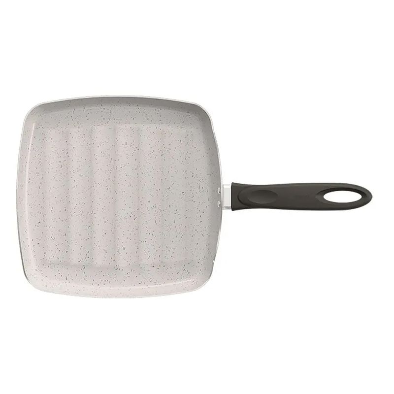 A Frigideira Grill 24cm Suprema - Brinox é a escolha perfeita para quem busca praticidade, desempenho e estilo na cozinha. Com design anatômico e cabo em baquelite antitérmico, a frigideira oferece segurança e conforto no manuseio, mesmo durante o uso em altas temperaturas. Ideal para preparar carnes, legumes e sanduíches, ela é uma aliada indispensável para quem deseja resultados de grelha com praticidade no dia a dia. Feita pela fabricante Brinox, a frigideira é confeccionada em alumínio de alta qualidade, com revestimento interno antiaderente Mineral Resist evita que os alimentos grudem e facilita a limpeza, permitindo cozinhar com menos óleo e mais saúde. O acabamento externo na elegante cor vanilla com grânulos cinzas traz um toque moderno e sofisticado ao ambiente, combinando perfeitamente com diferentes estilos de cozinha. Com dimensão de 9x23,5x38cm.