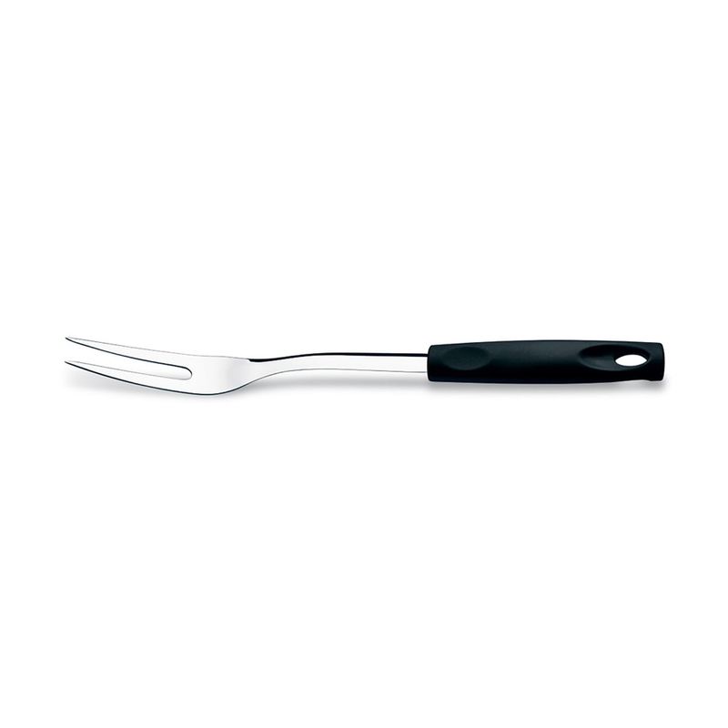 2. O cabo do garfo trinchante é resistente e confortável? Sim, o cabo é revestido em polipropileno, um plástico robusto e higiênico que oferece uma empunhadura segura e confortável para o manuseio.