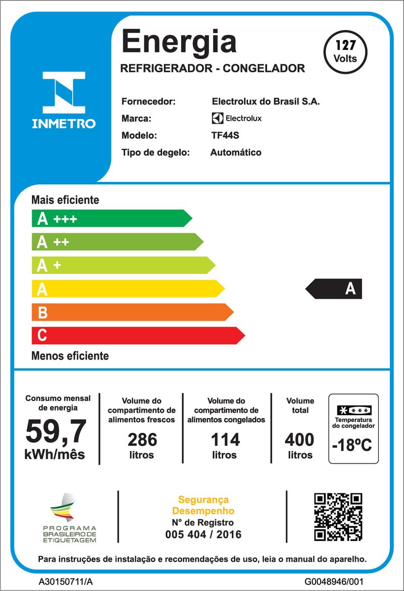 Geladeira Electrolux Frost Free 400L AutoSense Duplex Inox Look (TF44S) 127V