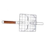 A estrutura da grelha é inteiramente produzida em aço inox, conhecido por sua resistência à corrosão e elevada resistência. O cabo é feito de madeira, proporcionando um manuseio seguro e confortável mesmo em altas temperaturas, protegendo as mãos do calor.