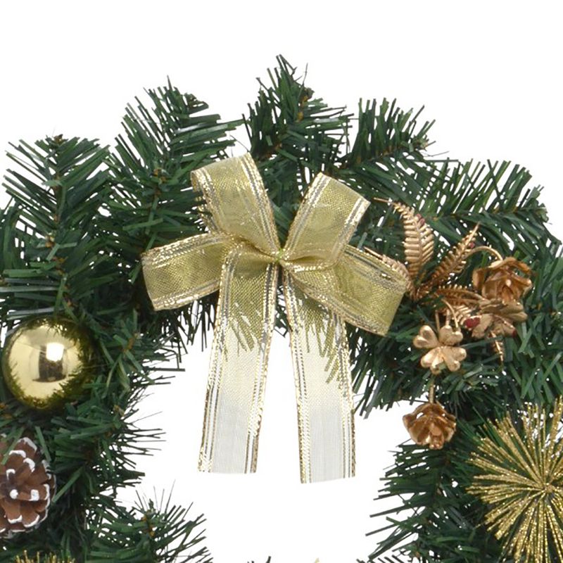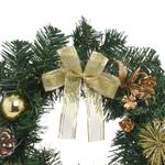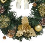 A Guirlanda Natalina 30cm Dourado Verde - Espressione Christmas é ideal para portas, paredes ou janelas, criando uma atmosfera acolhedora e festiva. Com folhagens verdes e detalhes dourados, ela combina elementos clássicos como laço, pinhas, bolas e flores, criando uma composição harmoniosa e cheia de brilho. Feita pela fabricante Espressione Christmas, a guirlanda é confeccionada com materiais de alta qualidade, com dimensão de 32x32x10cm.