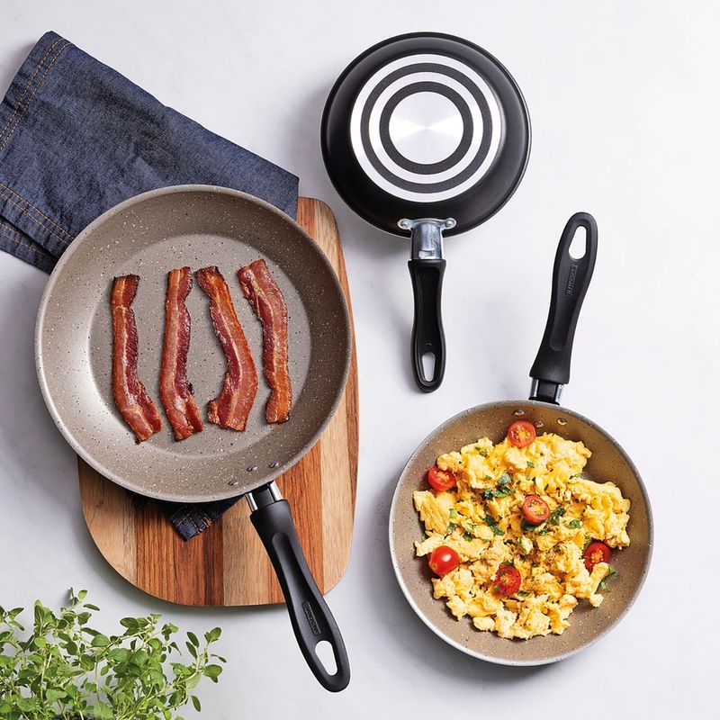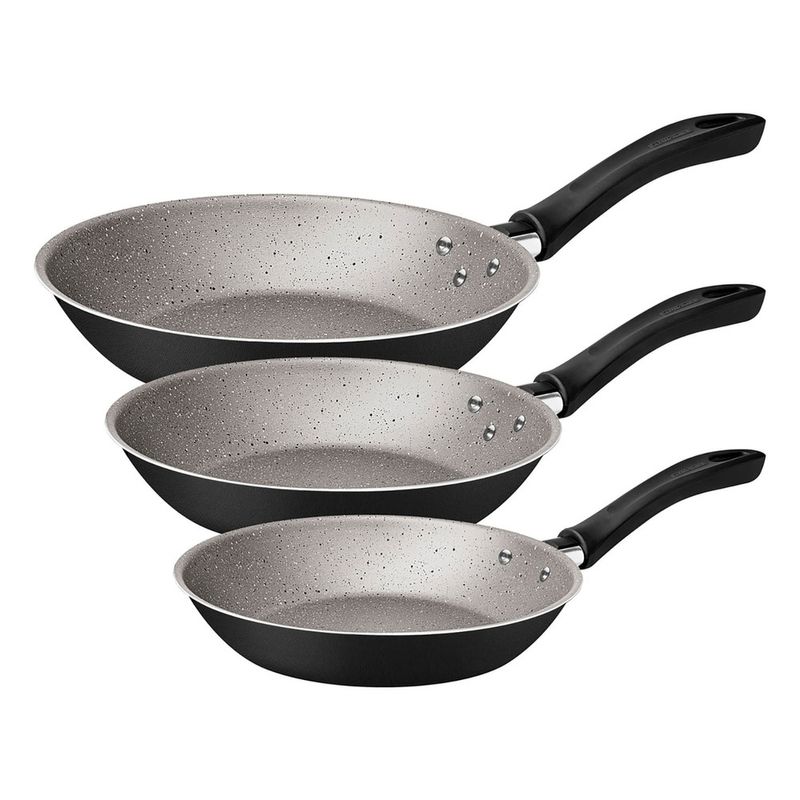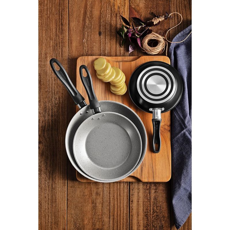 Conjunto Completo: Inclui três frigideiras de tamanhos variados (16, 20 e 24 cm), ideais para preparar desde pequenas porções até refeições maiores.