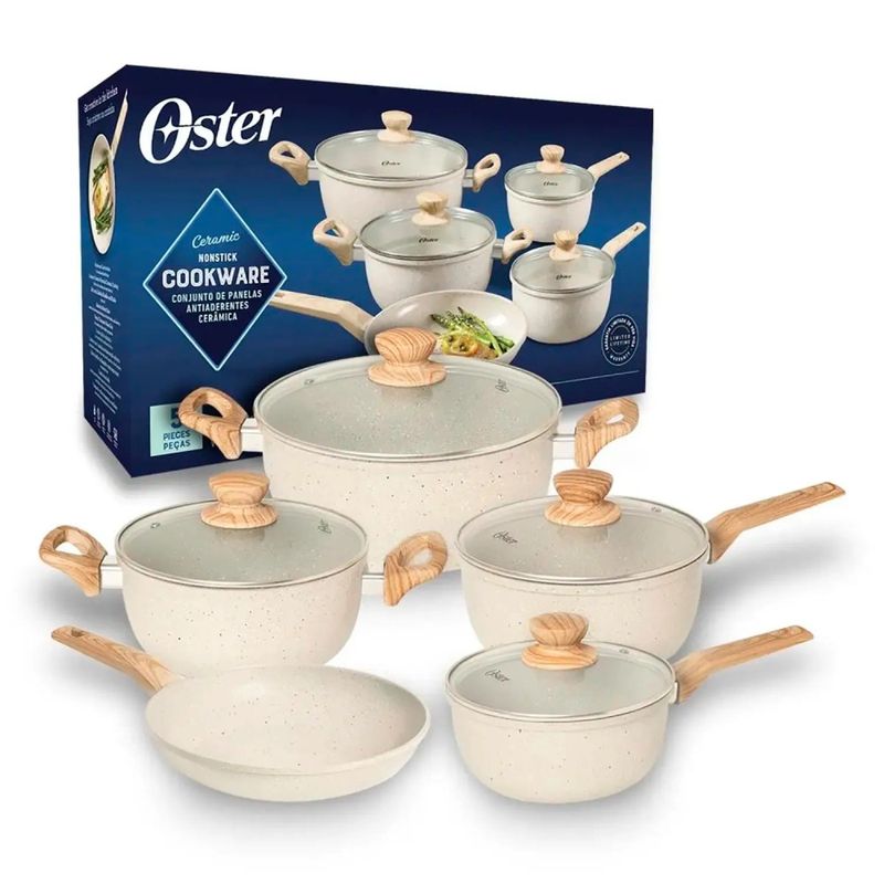 Jogo de Panelas Marble Edition 5 Peças Cream - Oster