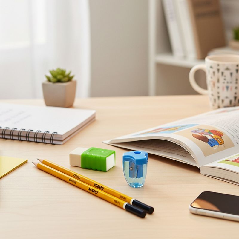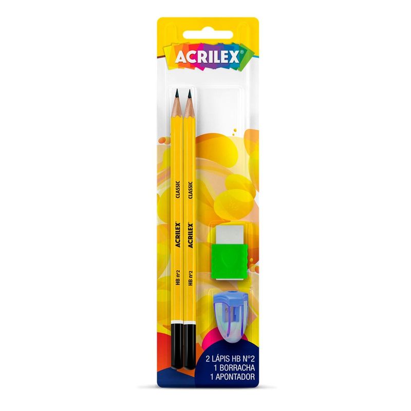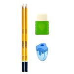 Kit Completo: Inclui 2 lápis, 1 borracha e 1 apontador, proporcionando praticidade e economia ao reunir todos os itens essenciais de papelaria em um único conjunto.