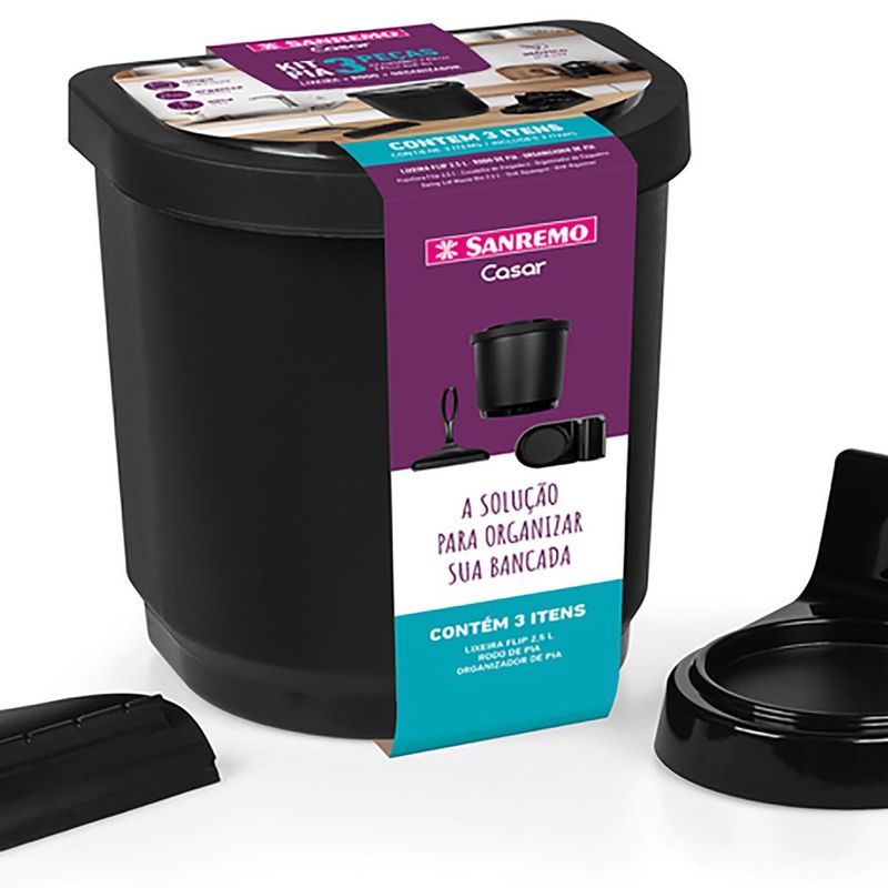 O Kit Organizador de Pia 3 Peças Preto da Sanremo eleva a funcionalidade e o estilo da sua cozinha, transformando a rotina de limpeza em algo mais prático e organizado. Este conjunto essencial, fabricado em polipropileno resistente, garante resistência e fácil manutenção. Inclui uma lixeira compacta, um rodinho eficiente e um porta detergente com compartimento para escova, todos projetados para otimizar o espaço e manter sua pia impecável com um acabamento elegante na cor preta.