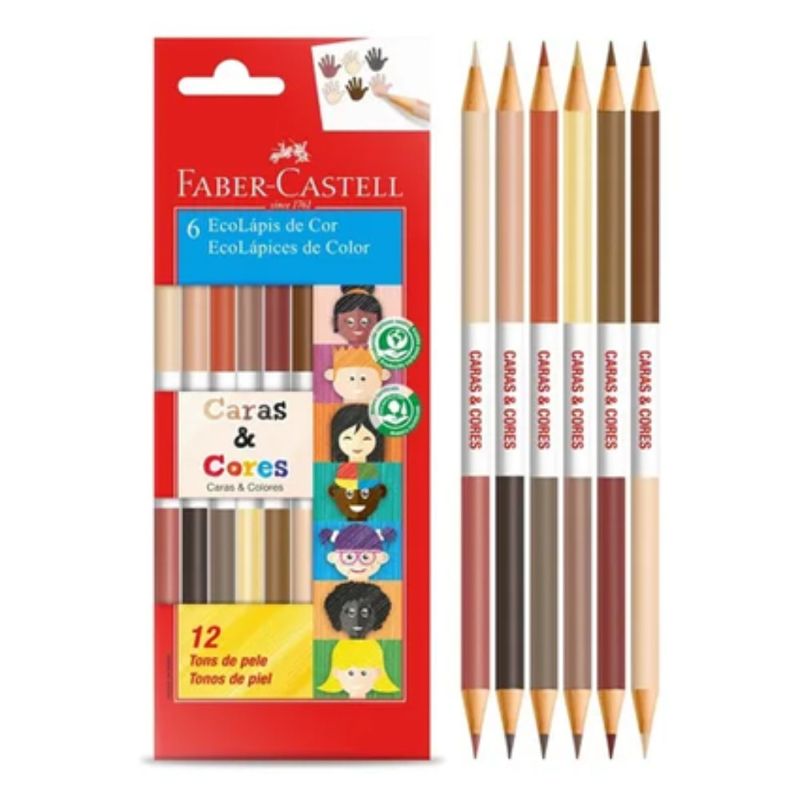 Os Ecolápis Tons de Pele oferecem uma paleta de 12 cores cuidadosamente selecionadas que representam uma ampla gama de tonalidades de pele. Eles são totalmente misturáveis, permitindo que crianças e artistas criem infinitas combinações e encontrem o tom exato que desejam, promovendo a inclusão e a autoexpressão em seus desenhos.