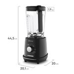 O produto funciona em 12 velocidades e vem com 5 receitas predefinidas para maior precisão no preparo de bolos, massas, sucos e vitaminas. É equipado com uma jarra de plástico ultrarresistente, livre de bisfenol A, com design ergonômico e uma generosa capacidade total de 3,2 litros.