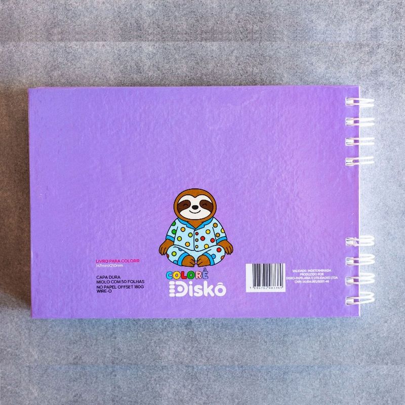 O Livro de Colorir Bicho Preguiça - Diskô contém 50 páginas com excelente acabamento. O papel possui uma gramatura de 150g, que é mais espessa do que a de livros comuns, garantindo maior resistência e sendo ideal para evitar que a tinta de lápis ou marcadores vaze para a página seguinte.