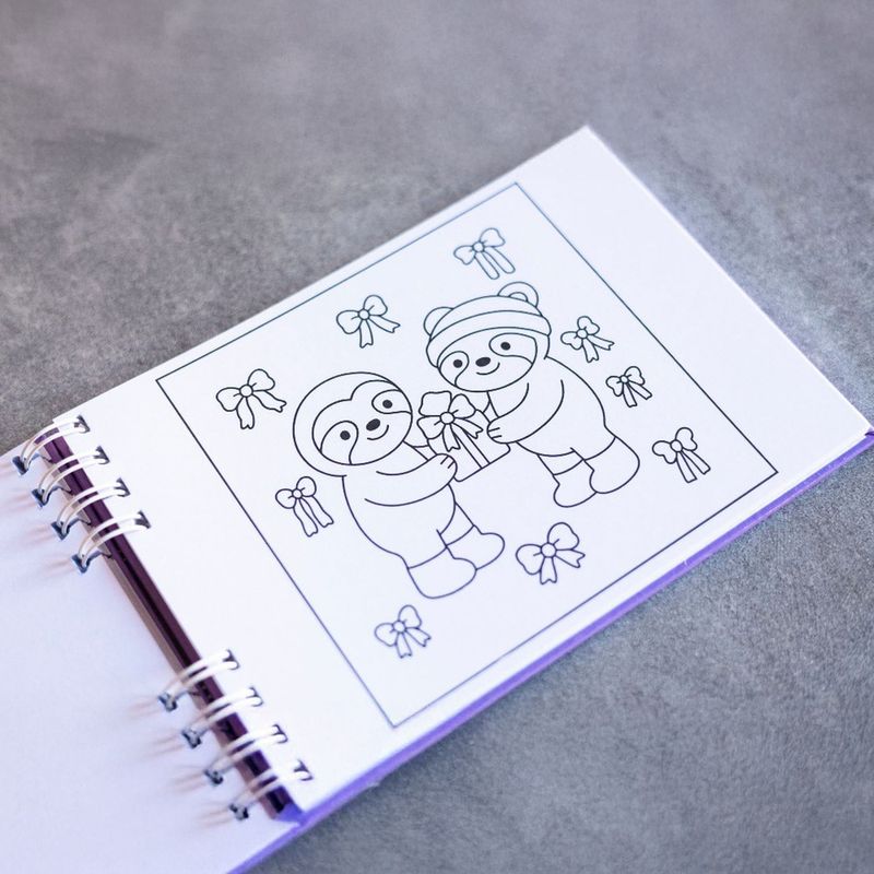 Encadernação Wire-o que permite a abertura total das páginas, oferecendo conforto e liberdade para colorir sem obstáculos.