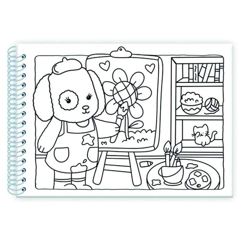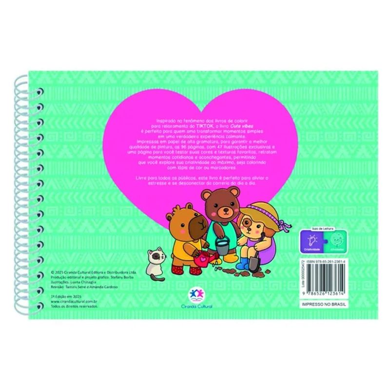As 47 ilustrações exclusivas retratam momentos cotidianos e aconchegantes, inspiradas no conceito "Cute Vibes", ideal para quem busca uma experiência de colorir relaxante e cheia de charme.