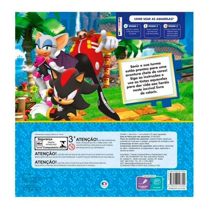 O Livro para Colorir Sonic Cores e Aventura possui 16 páginas e é confeccionado em papel de excelente padrão, com um acabamento em laminação brilho que confere resistência e uma superfície ideal para as cores.