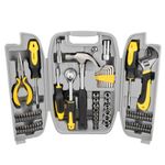 Este conjunto contém 78 peças diversas, incluindo alicates, chaves de fenda, chaves Phillips, chave ajustável, martelo, catraca, soquetes, bits e chaves Allen, oferecendo uma solução completa para suas necessidades.